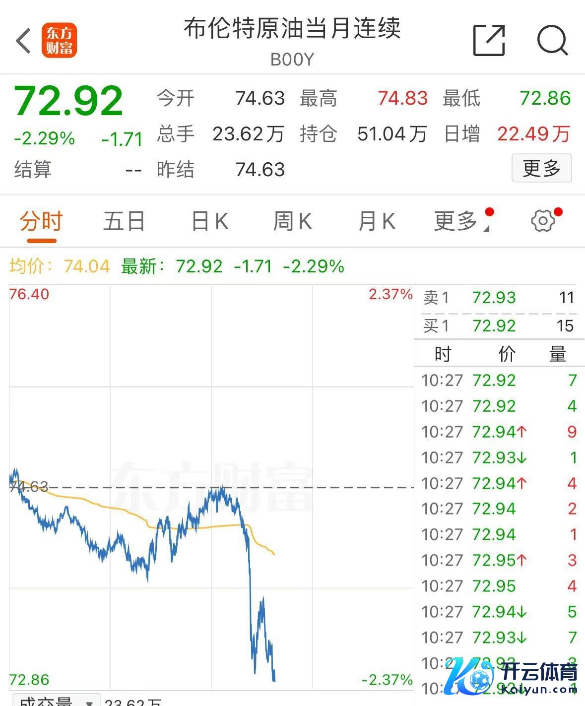 海外油价也重挫。抵制发稿,WTI原油日内走低超2%,现报69.58好意思元/桶;布伦特原油日内走低2.29%,现报72.92好意思元/桶。