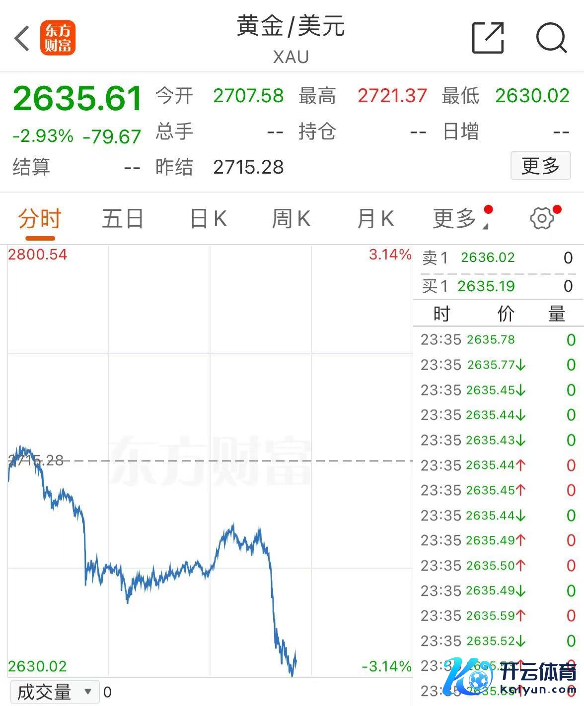 黄金、白银全天捏续杀跌。抵制发稿,现货黄金向下波及2635.61好意思元/盎司,日内跌幅达2.93%,一天内跌超77好意思元/盎司;现货白银日内跌幅超3%,现报30.28好意思元/盎司。