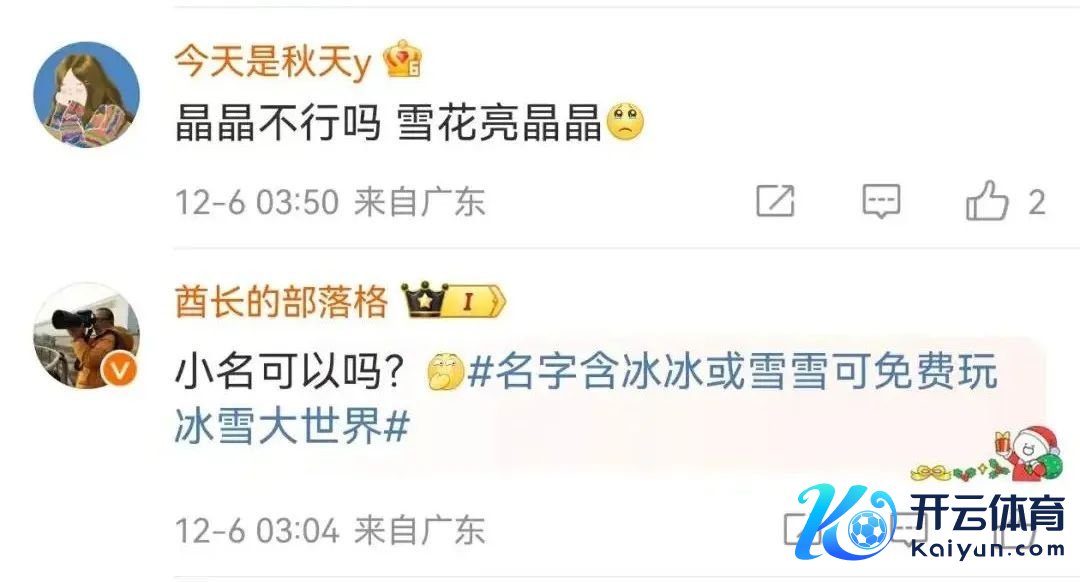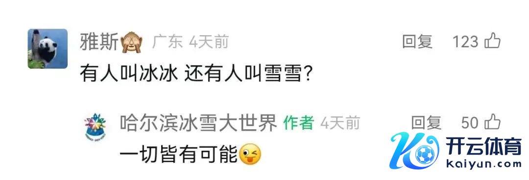 在哈尔滨冰雪大世界的评述区,除了真实叫“冰冰”“雪雪”的一又友,还有不少东说念主为名字只带一个“冰”或“雪”而感到缺憾,以致敕令“带一个字的应该半价”。也有网友暗示,“冰冰和雪雪听起来像奶名”,在后续的臆想中,不少东说念主说我方的奶名等于“冰冰”或“雪雪”,但愿也能免票入园。