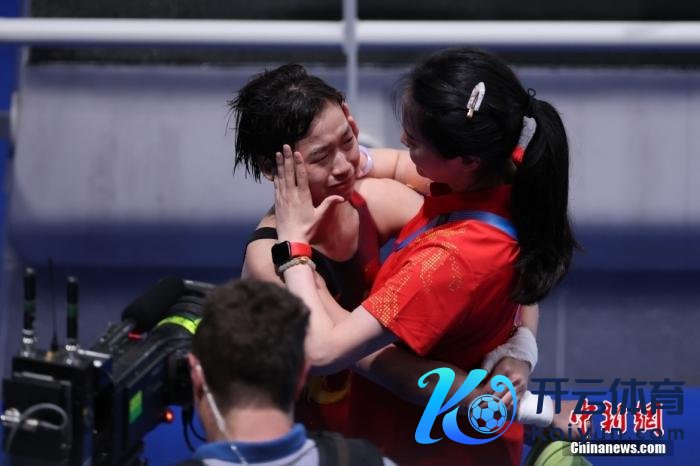 而已图:全红婵和陈若琳相拥。中新社记者 富田 摄