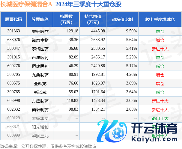 长城医疗保健夹杂A为夹杂型-偏股基金,凭据最新一期基金季报裸露,该基金钞票设置:股票占净值比92.33%,债券占净值比0.13%,现款占净值比8.33%。基金十大重仓股如下:
