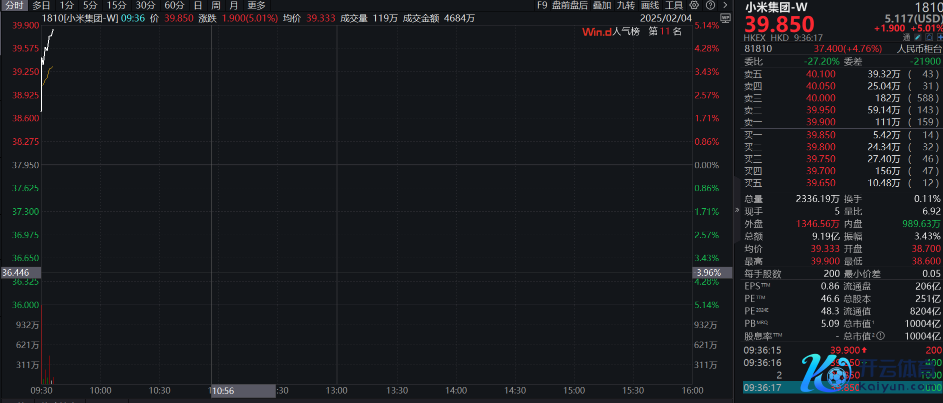 小米集团盘初涨超4%,股价再创历史新高,总市值面对万亿。