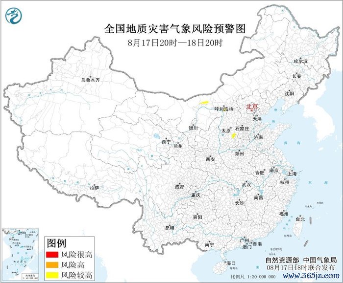 当然资源部与中国式样局8月17日18时连合髻布地质灾害式样风险预警: