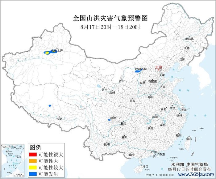 水利部和中国局势局8月17日18时汇集发布黄色山洪灾害局势预警: